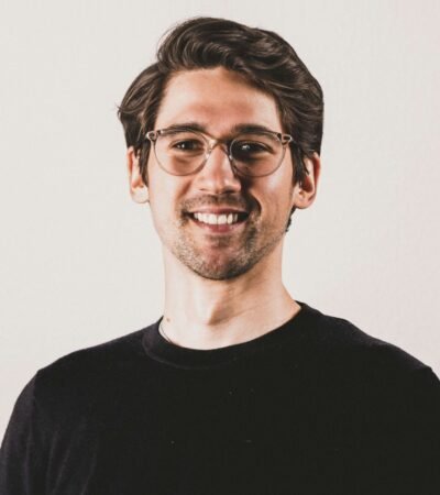 Two male chefs wearing black uniforms and caps are working in a dimly lit kitchen. One of them is holding a paper bag and appears to be focused on his task while the other watches. The background shows various kitchen equipment and utensils.
